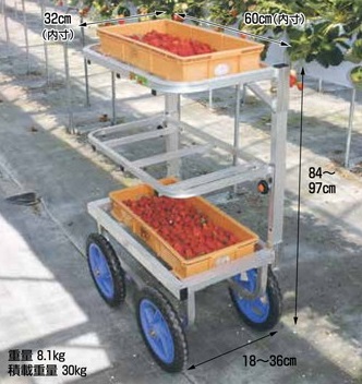 - アルミ製収穫台車シリーズの中で最も強力型で、キャベツ等の重量物野菜の収穫にピッタリです。